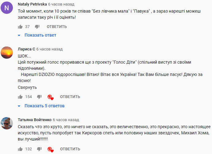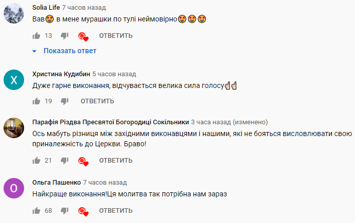 "Слезы на глазах и мурашки по коже! Боже, храни Украину! Невероятное проникновенное исполнение, спасибо".