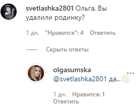 На паре снимков можно отчетливо разглядеть, что на месте, где была родинка, теперь шрам. На вопрос подписчиков, действительно ли она удалила родинку, Сумская ответила утвердительно.