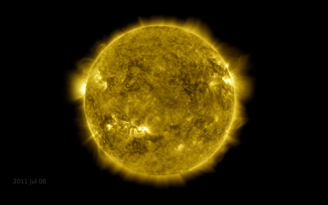В ролике можно увидеть, как наше светило проходит через цикл своей активности, которые, как известно, составляют 11 лет. На пике своей активности Солнце имеет большое количество пятен - на видео это темные участки на поверхности.