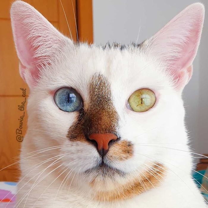 Котенка нашли в парке, когда ему было около трех месяцев. Сначала он попал в приют, а уже оттуда - к Марии. Она назвала питомца в честь легендарного певца Дэвида Боуи. К слову, у знаменитости не было гетерохромии, но котенок оказался настолько же артистичным и эффектным, как и его звездный "тезка".