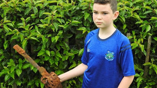 Житель города Деррилаун Фионнтан Хьюз получил на свое 10-летие интересный подарок - металлоискатель. В первый же день применения подарка в действии он нашел около своего дома закопанный в земле старинный меч, передает Час Пик со ссылкой на зарубежные СМИ.