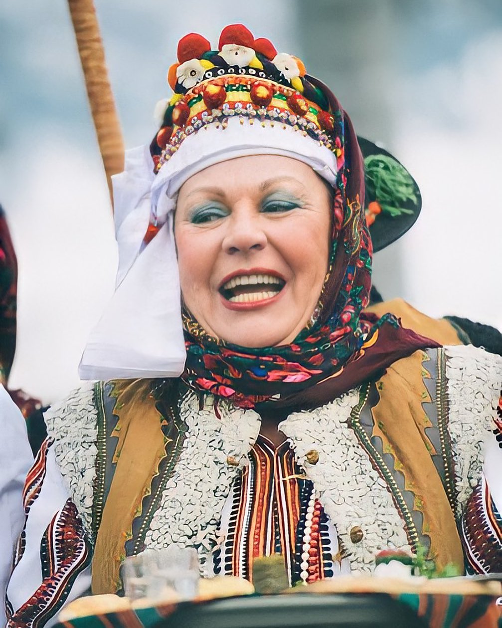 Так, на одном из снимков Кравченко предстала в колоритном украинском народном костюме: образ актрисы напоминал Солоху из повести "Вечера на хуторе близ Диканьки".