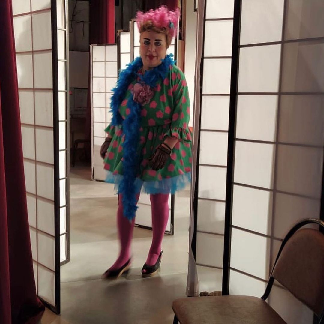 Еще одно фото и вовсе повергло поклонников в ступор. На снимке Татьяну не узнать: на ней яркий макияж, короткое цветастое платье, розовый парик и колготки. Очевидно, в таком образе Кравченко выступала в каком-то спектакле.