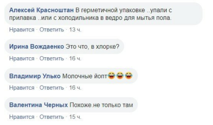 Что находилось в ведре - остается только догадываться. Возможно, мыли пол или холодильник. В социальной сети также предположили, что это специальный раствор для того, чтобы потом легче было снять наклейку с датой производства.