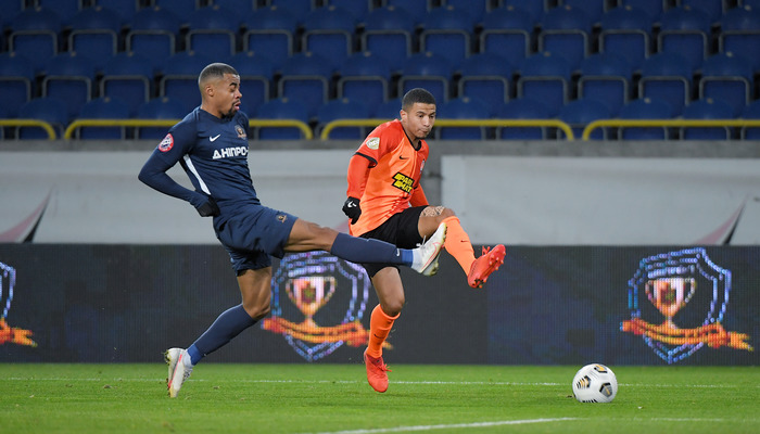 В конце первого тайма бразильский форвард выступил уже в роли "помощника". Он перехватил мяч после еще одной ошибки Батагова и отпасовал на Тете, который забил гол в ворота "Днепр-1".