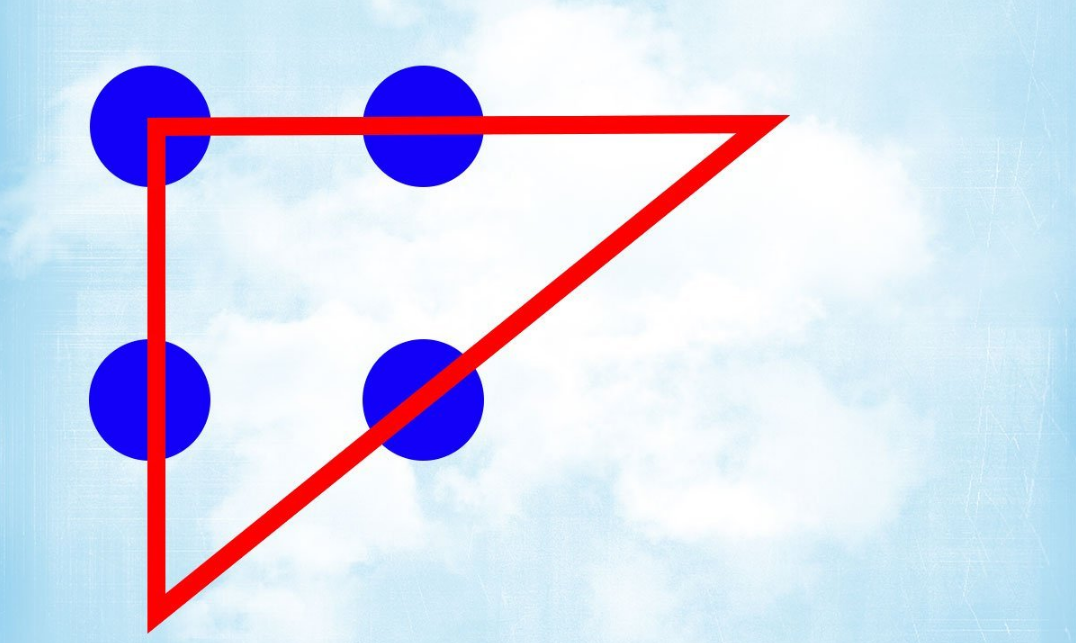 Попробуйте соединить эти четыре точки тремя линиями, не отрывая палец от изображения.