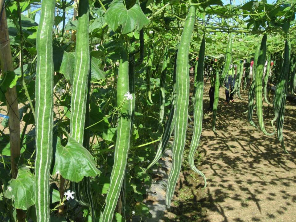 Еще один "пришелец" из тропиков, его еще называют змеевидным огурцом. Необычайно длинные плоды трихозанта действительно похожи на извивающихся змей. На вкус они похожи на огурец с привкусом сладкого редиса. Молодые плоды можно есть сырыми. Трихозант варят, жарят, тушат, а мякоть полностью созревших плодов добавляют в супы и соусы для густоты.