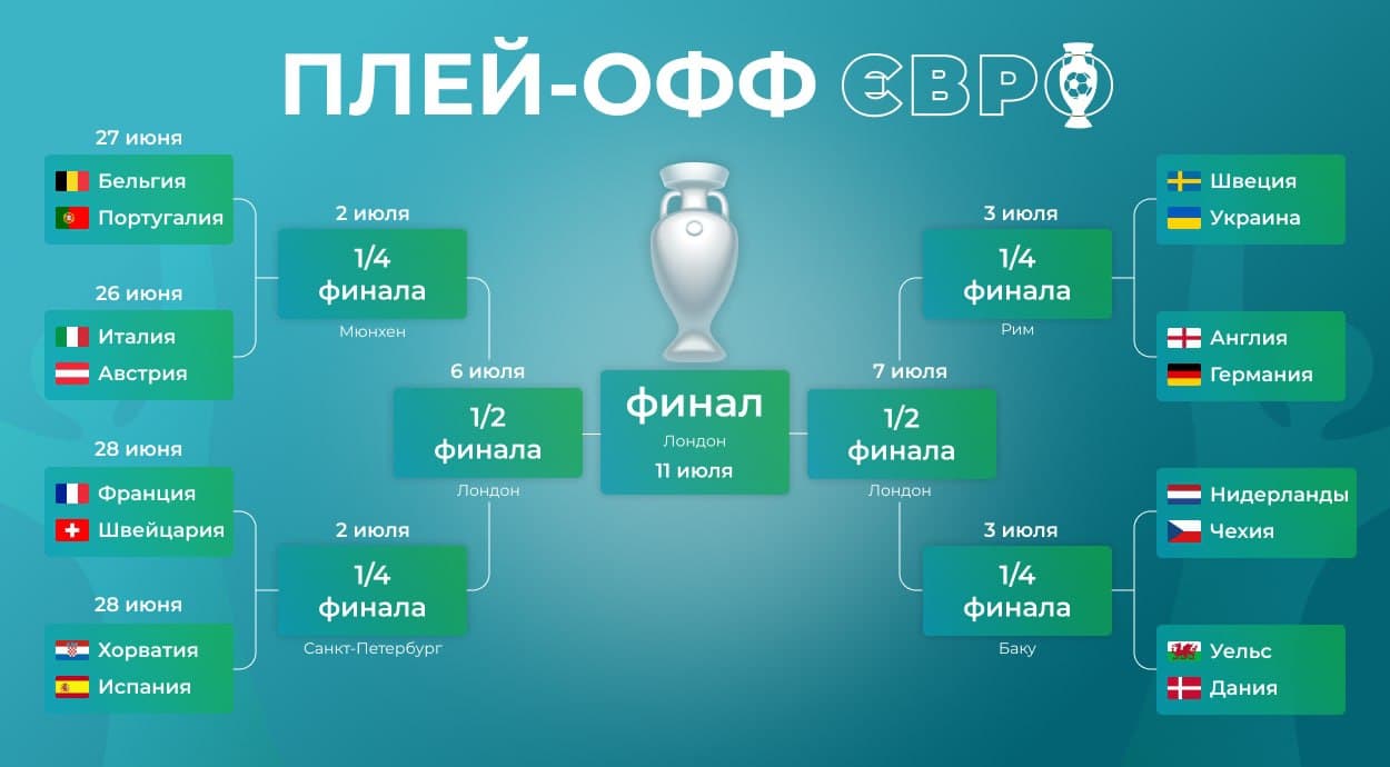- Италия - Австрия (22:00, 26 июня, Лондон);
