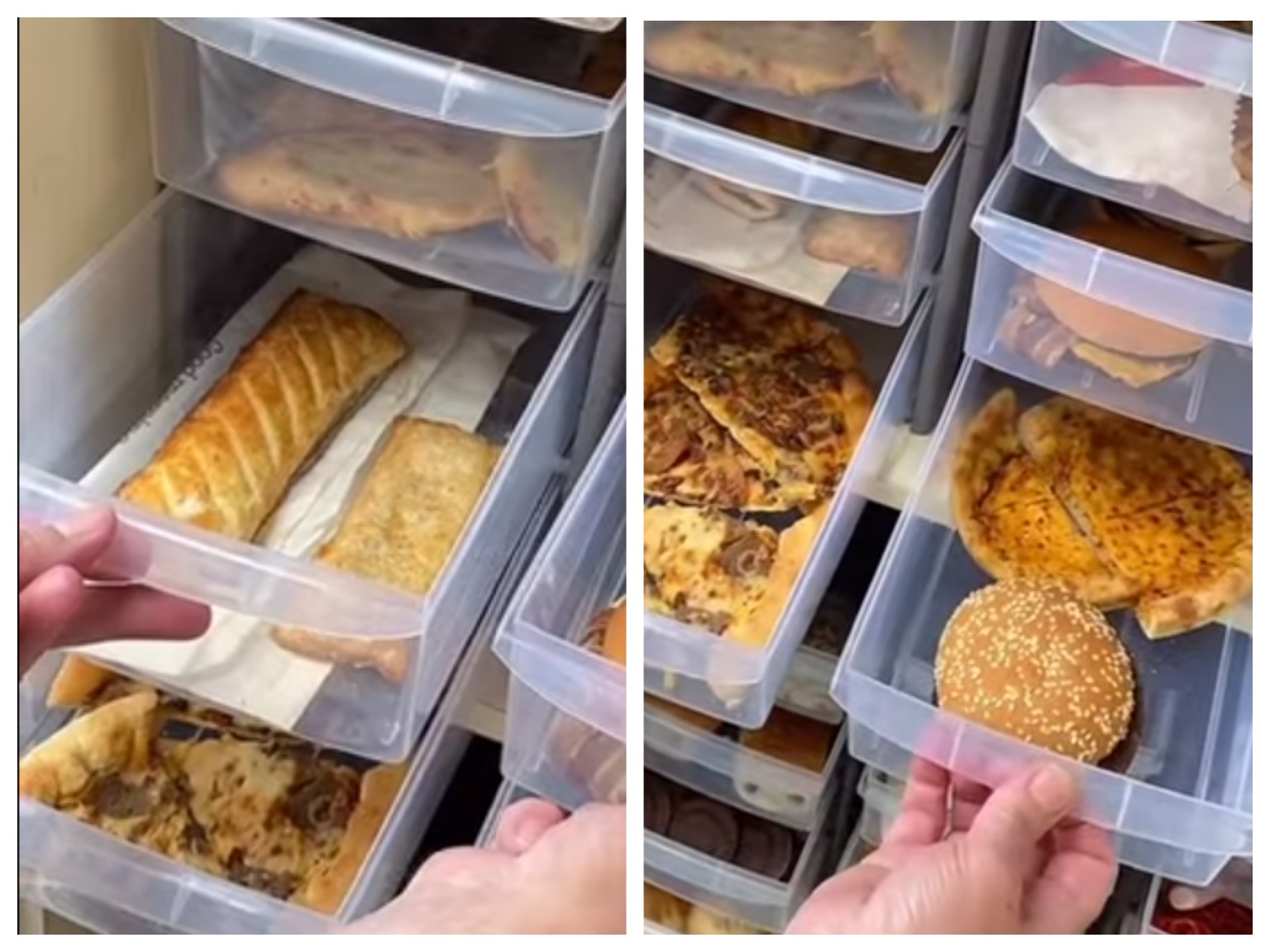 На видео девушка показала шкаф, в котором хранится коллекция различной еды из ресторанов быстрого питания - бургеры, пицца, картофель фри, чипсы, пончики и т.д. Все это собиралось более двух лет, и удивительно, что еда, которая много месяцев хранилась при комнатной температуре, все еще имеет "товарный" вид, разве что немного подсохла и зачерствела.