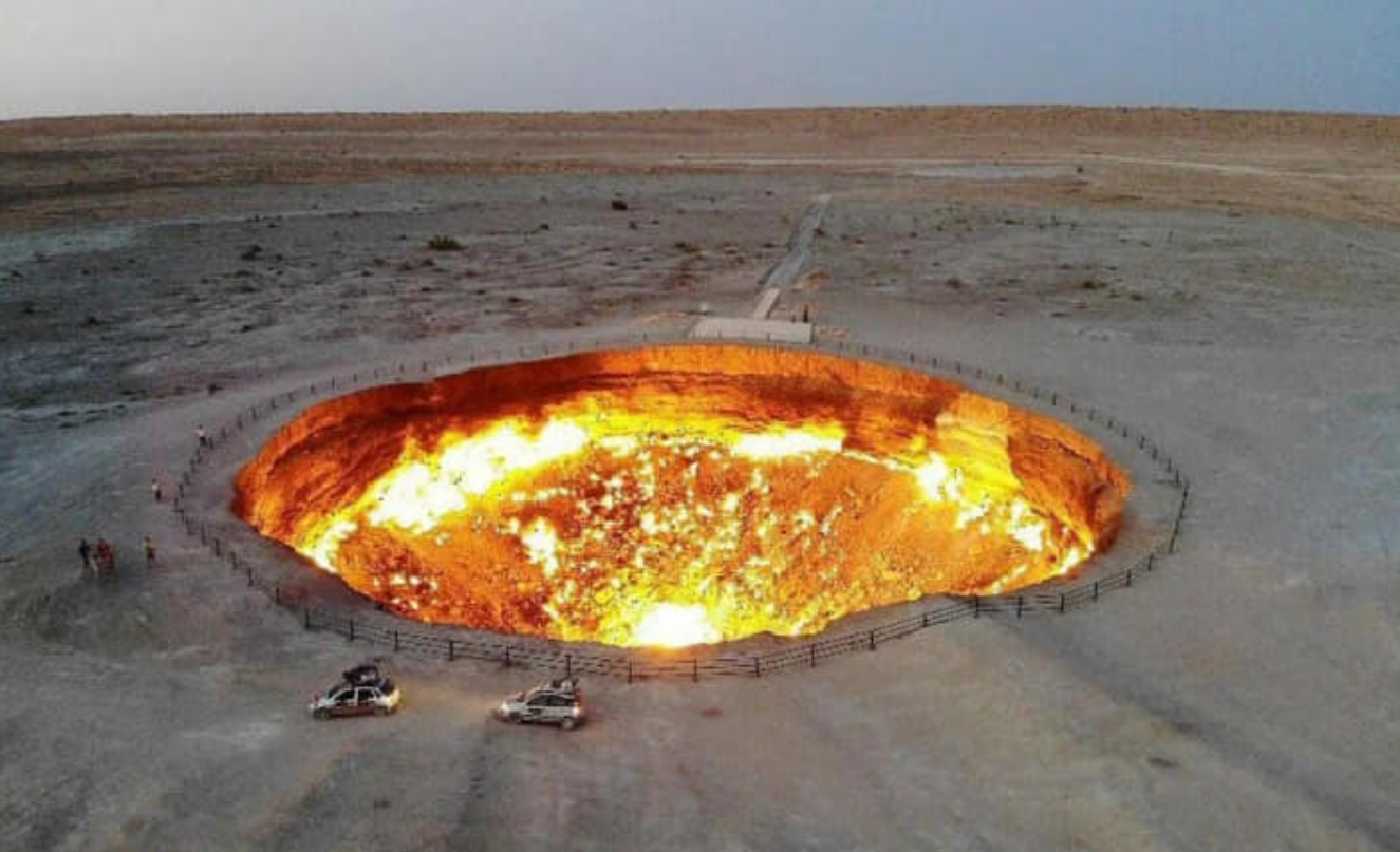 Дарваза - газовый кратер в Туркмении, местные жители и туристы называют его "Дверью в преисподнюю", или "Вратами ада". Кратер находится в пустыне Каракумы, недалеко от разрушенного селения Дарваза (примерно 270 км от Ашхабада).