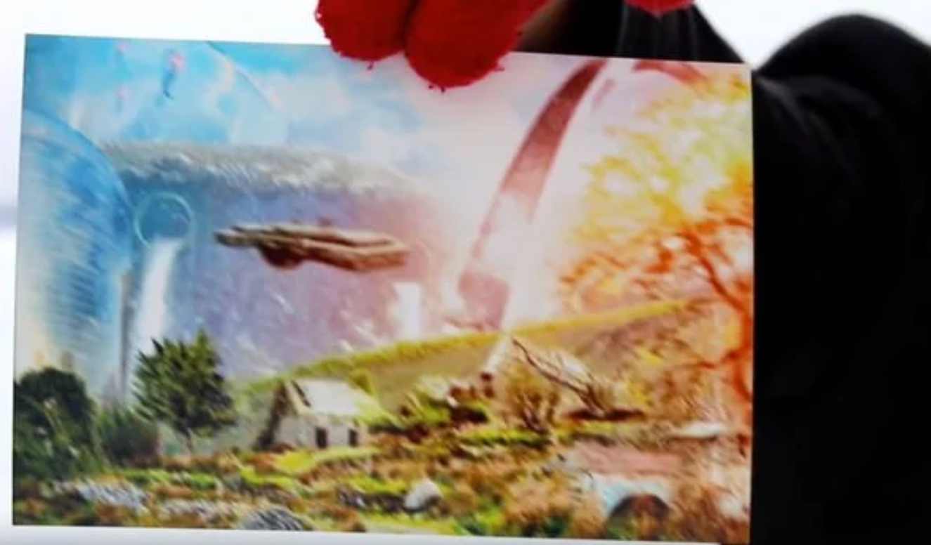 Мужчина сказал: "То, что я говорю вам, правда, и у меня даже есть доказательства, подтверждающие это". Затем он достал три фотографии того, каким, по его утверждению, должен быть мир через почти 1300 лет в будущем.