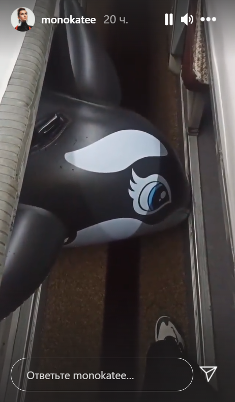 Но снимками в бассейне Павленко не ограничилась и в сториз показала другие приключения "Анжелы": при отъезде из Скадовска косатку едва затолкали в автобус. В конечном итоге "Анжелу" сдули.