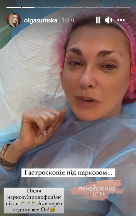 "Друзья, только отошла от наркоза. Делали гастроскопию под наркозом, что я, собственно, вам рекомендую. Так сладко поспала. Сейчас будем смотреть результаты", - сказала Сумская в видео.
