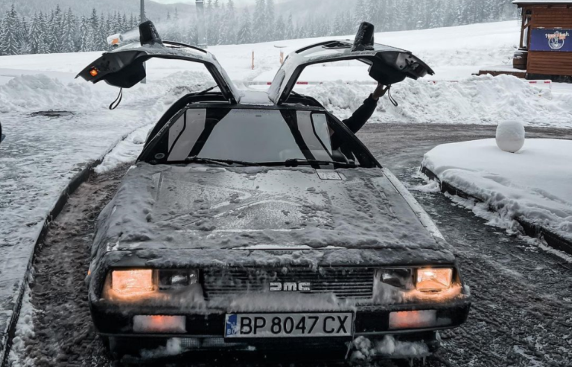 На украинском горнолыжном курорте Буковель был замечен редкий автомобиль DeLorean DMC12 - такой же снимался в фильме "Назад в будущее" в качестве "машины времени".