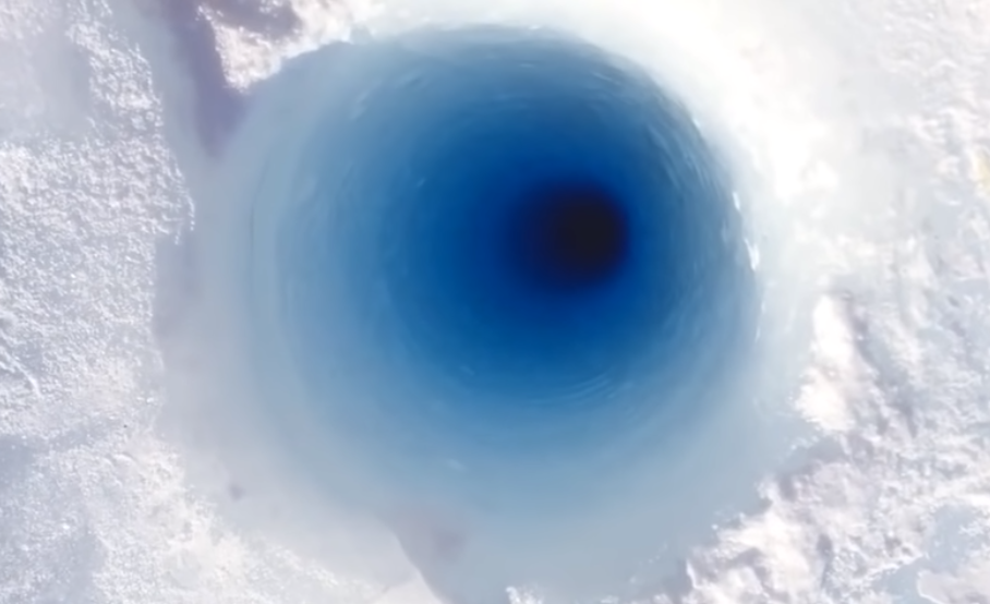 Гляциолог Питер Нефф проверил, что будет, если бросить льдинку в 90-метровую скважину, которая осталась после исследовательских работ. Получился очень интересный звук, который можно услышать в мультиках или фантастических фильмах, где стреляют лазерами.