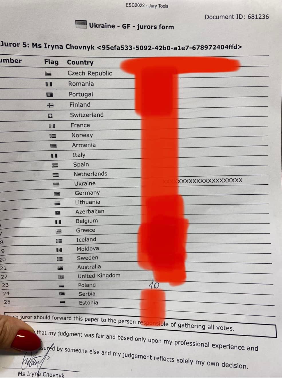 В то время как польское жюри дали нашим победителям Kalush Orchestra максимальные 12 баллов, представитель Польши Ochman не получил ни одного балла от украинского жюри. В то же время голосование зрителей из Украины принесло Польше 12 баллов.