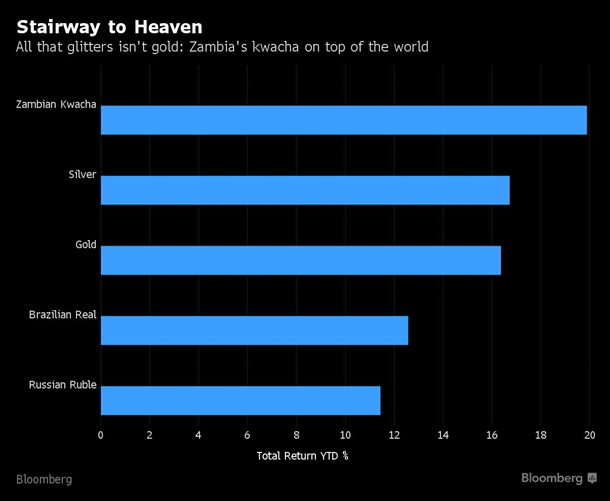 С начала года национальная денежная единица Замбии выросла по отношению к доллару на 19,9%. Для сравнения, золото подорожало на 16,3%.