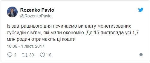 Выплата средств будет осуществляться со 2-го по 15 ноября 2017 года. По словам Розенко все получат их своевременно и в полном объеме.