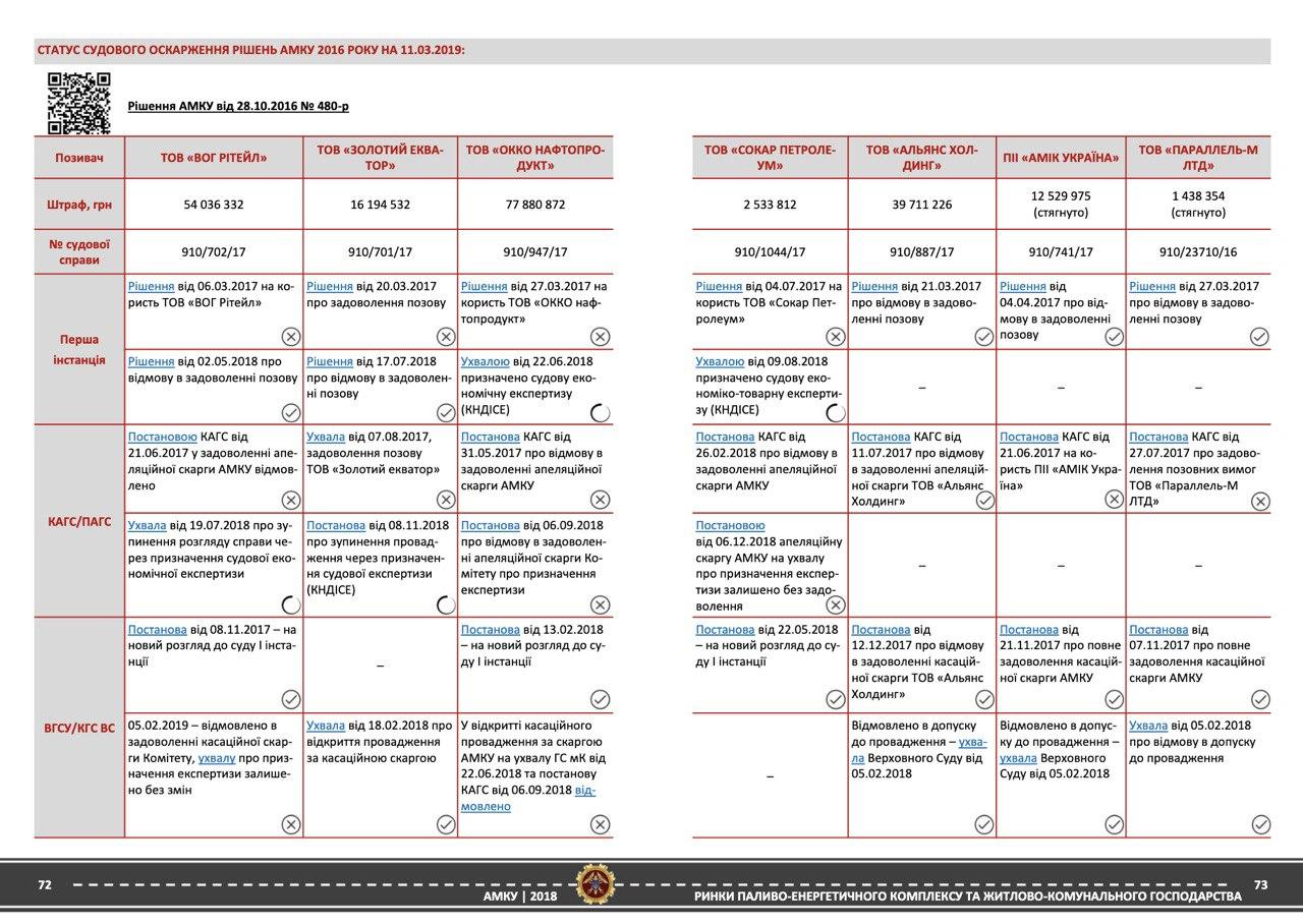 Доказано, что указанные сети заправок совершали согласованные действия и после того, как в ноябре 2016 года АМКУ оштрафовал эти компании и ряд других нефтетрейдеров (ООО «Альянс Холдинг», ПИИ «АМІК Україна», ООО «Параллель-М ЛТД») на общую сумму 204 млн грн.