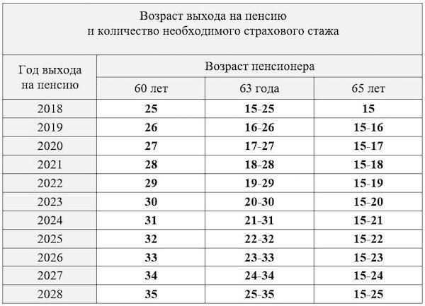 В связи с пенсионной реформой, требуемый срок стажа сейчас повышается каждый год, передает Час Пик. Так, в 2019 году на пенсию выйдут лишь те 60-летние украинцы, которые наработали минимум 26 лет стажа. В 2028 году этот срок повысится до 35 лет. Если же необходимого стажа нет, гражданину придется работать дольше или довольствоваться соцпособием, которое намного скромнее пенсии.