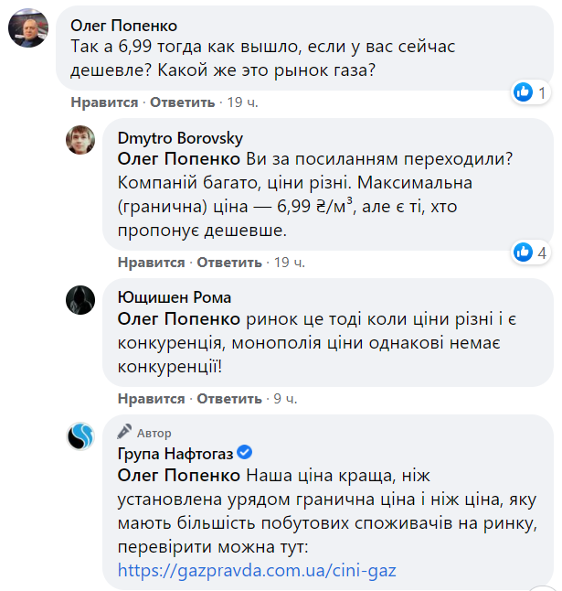 Некоторые пользователи также упрекают "Нафтогаз" в том, что на этот раз они не выполняют обещание по поводу цены на 40% ниже, чем у конкурентов.