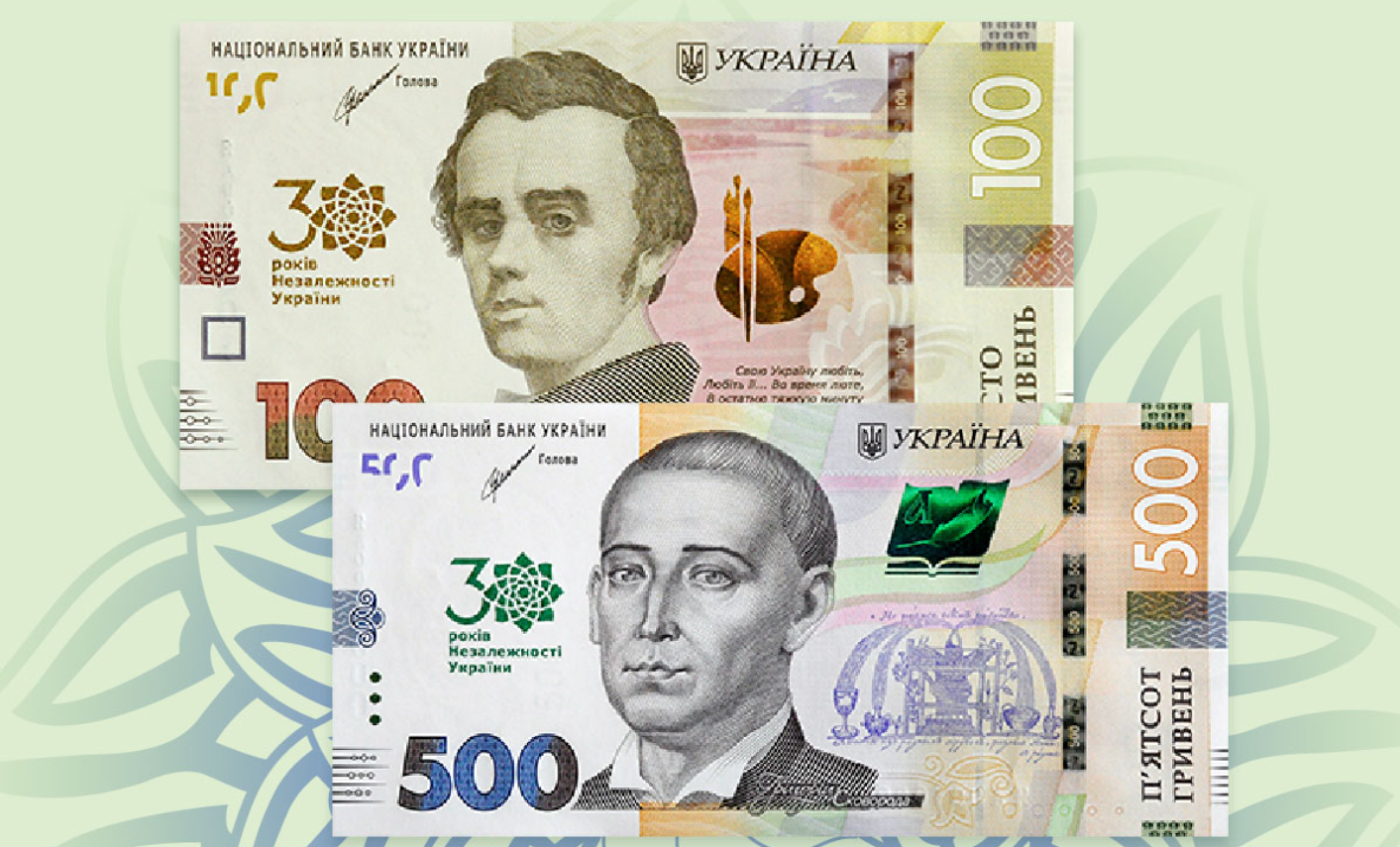 Национальный банк Украины 20 августа 2021 года введет в обращение две памятные банкноты номиналами 100 и 500 гривен, посвященные 30-летию Независимости Украины.