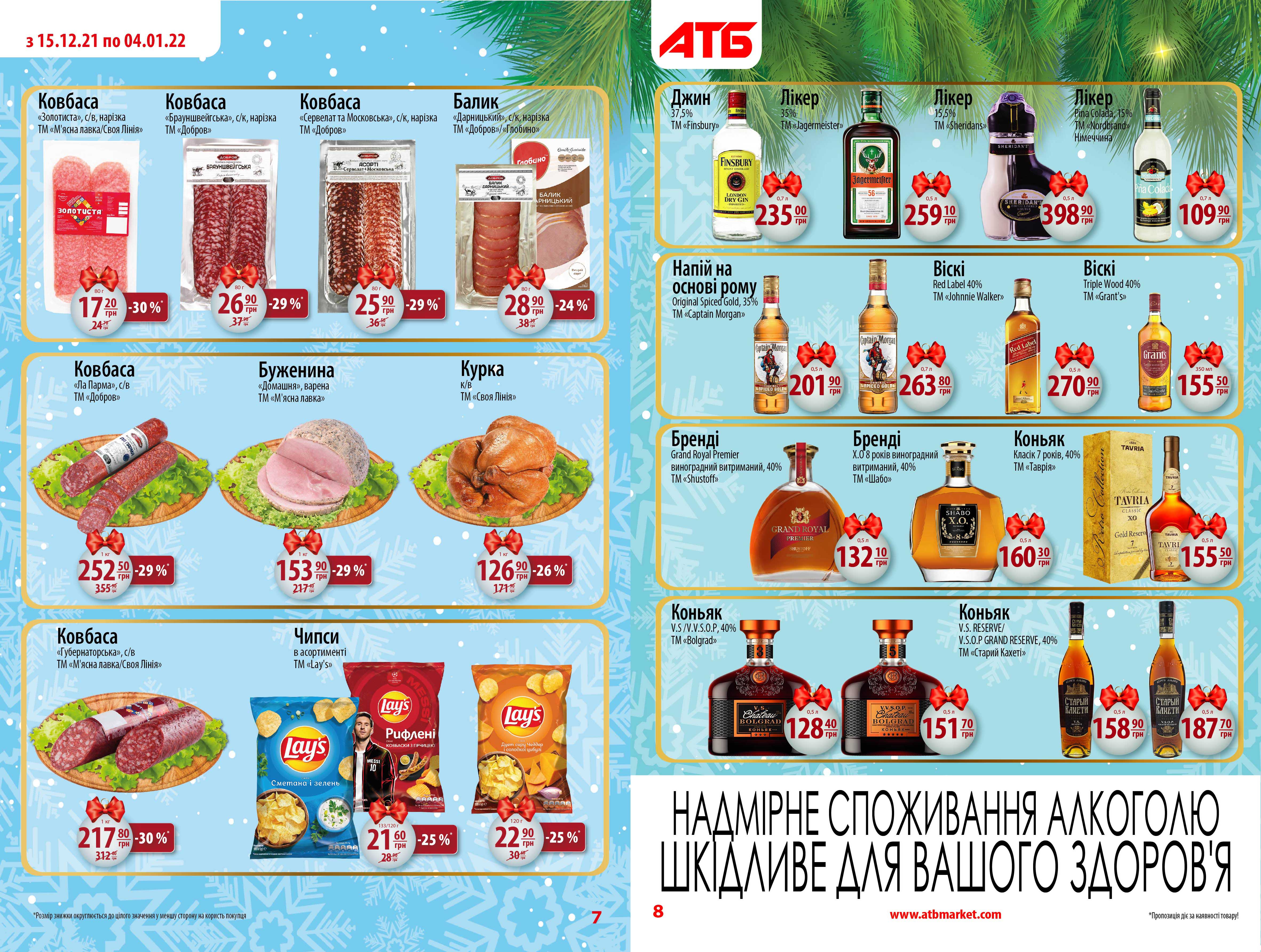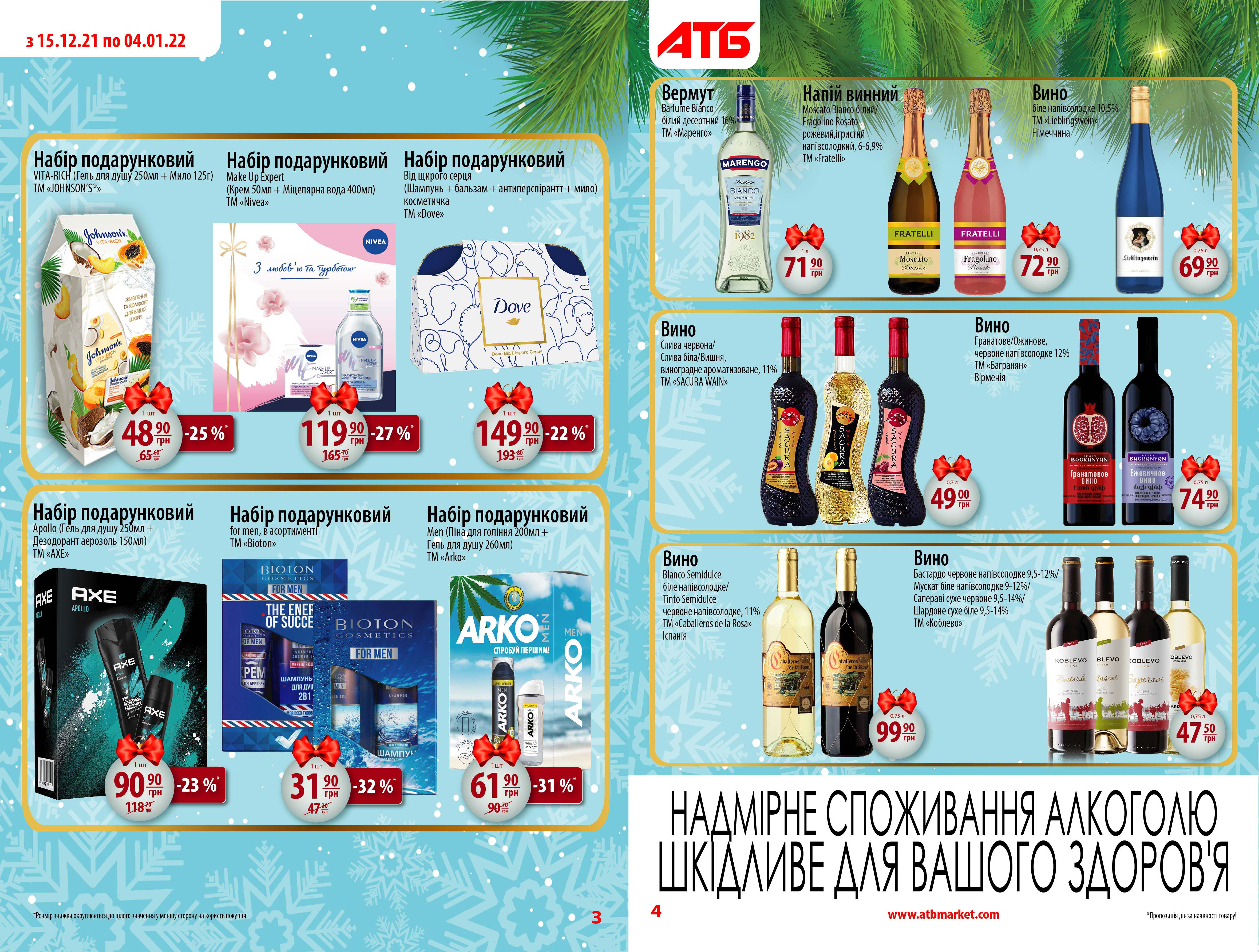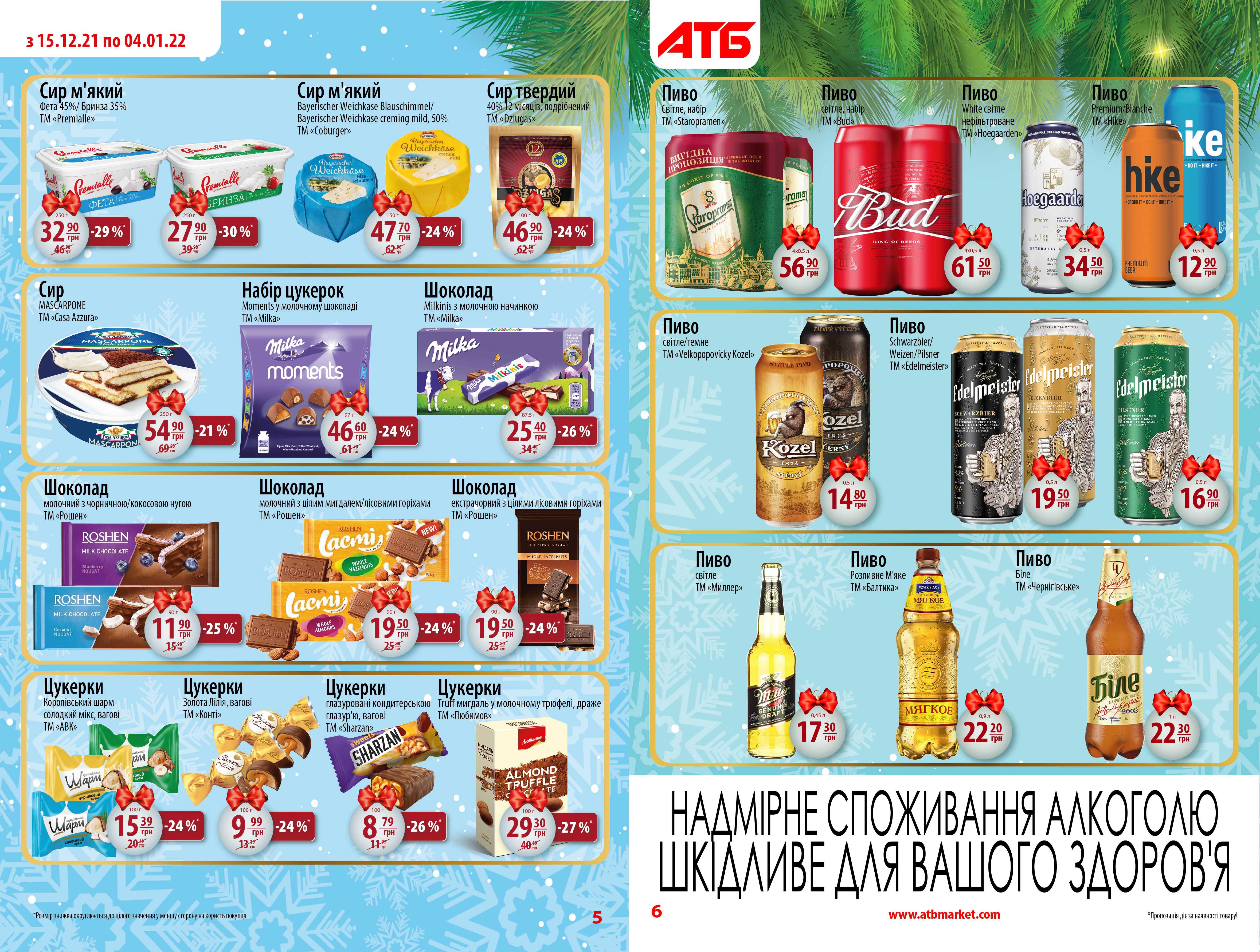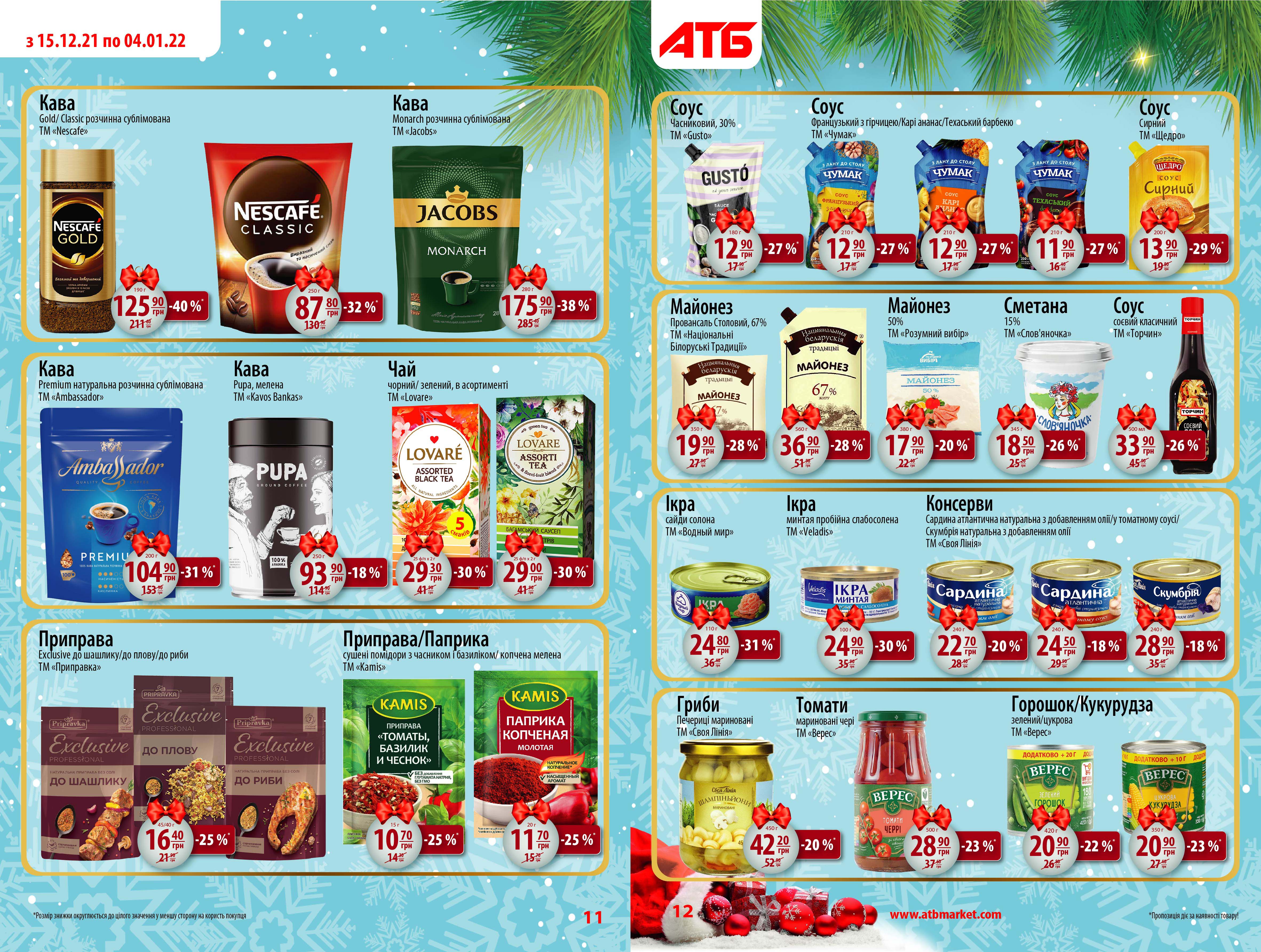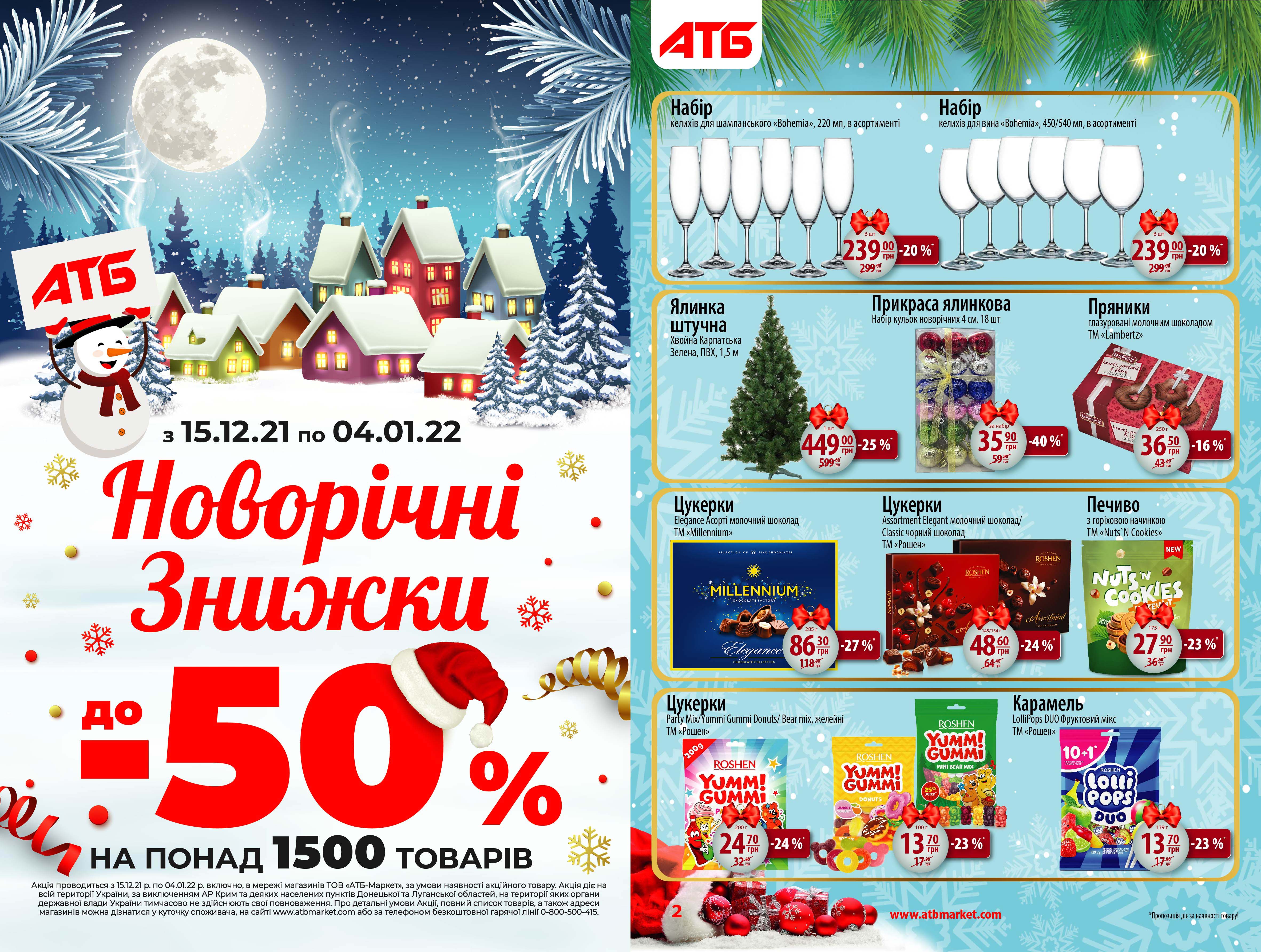 Новогодние цены действуют в АТБ с 15 декабря и останутся таковыми до 4 января включительно. Они распространяются более чем на 1500 товаров, с полным перечнем которых можно ознакомиться по ссылке , а также на фото ниже.