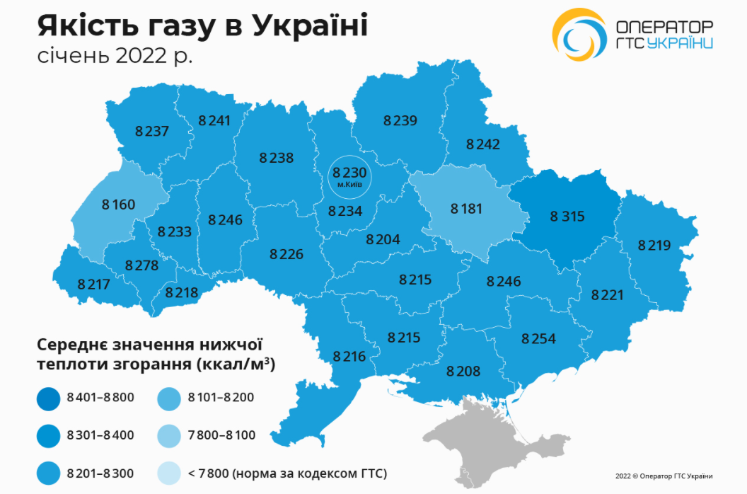 "Оператор ГТС Украины" ежемесячно публикует на своем сайте информацию о качестве газа по областям.