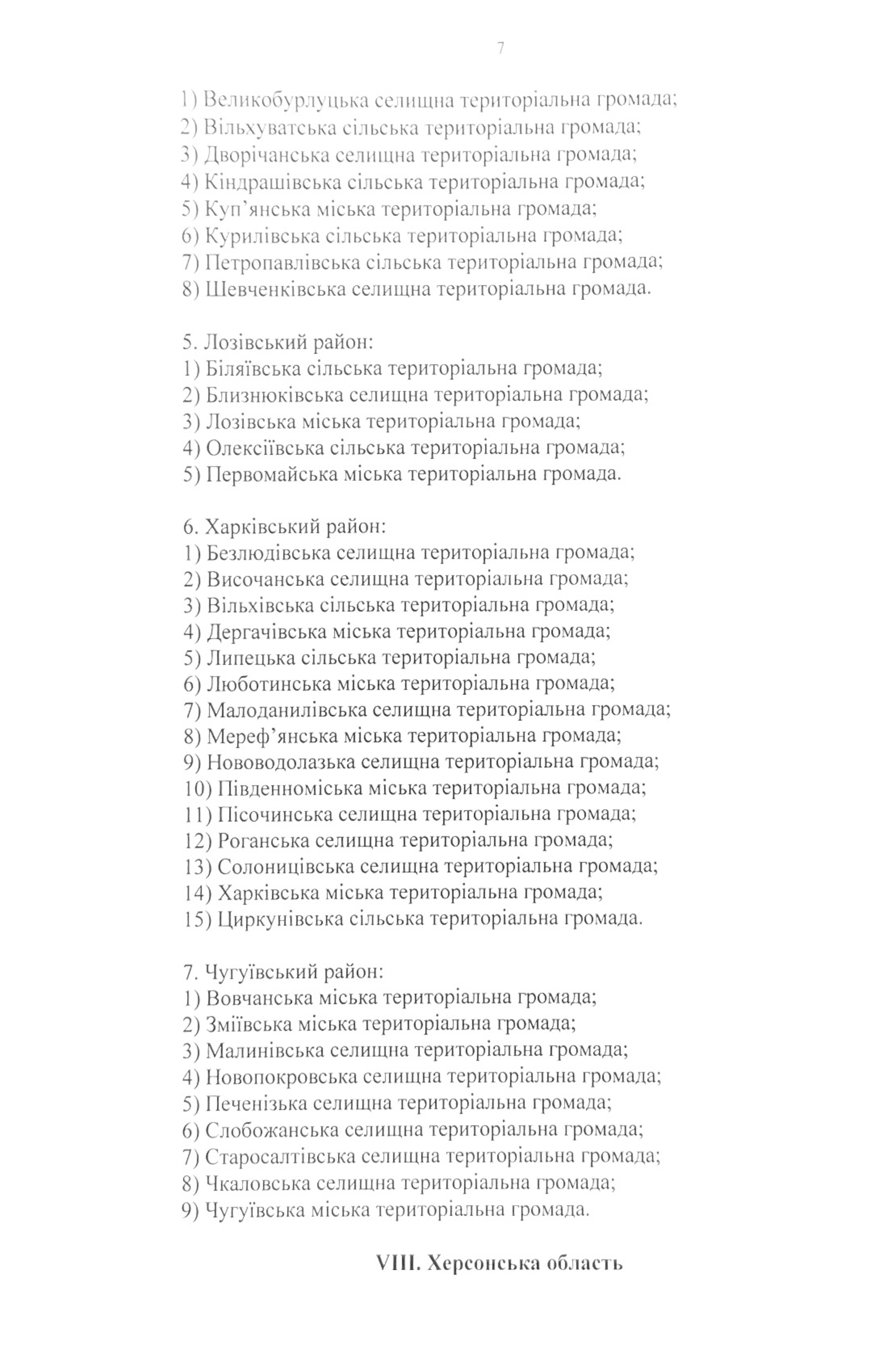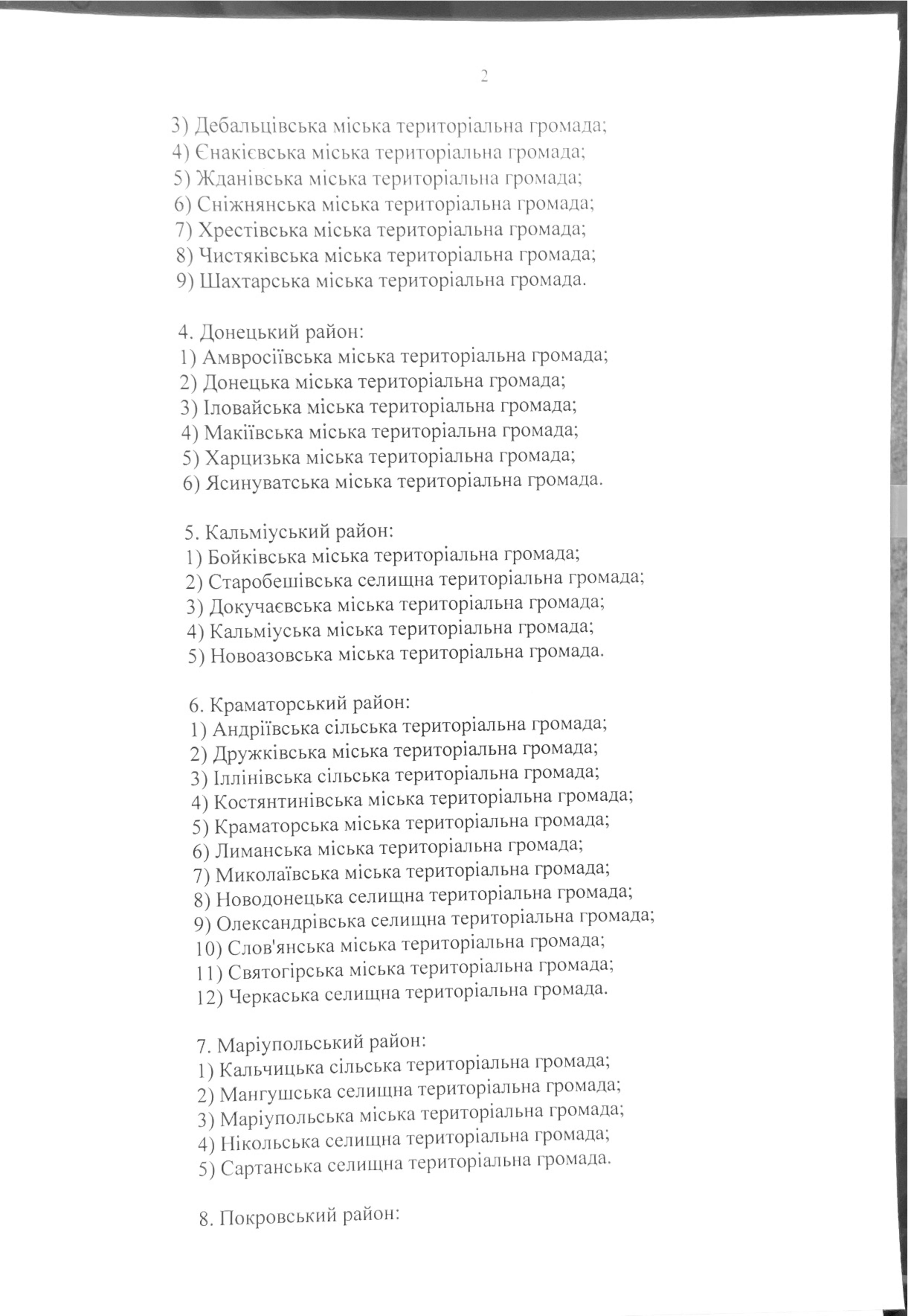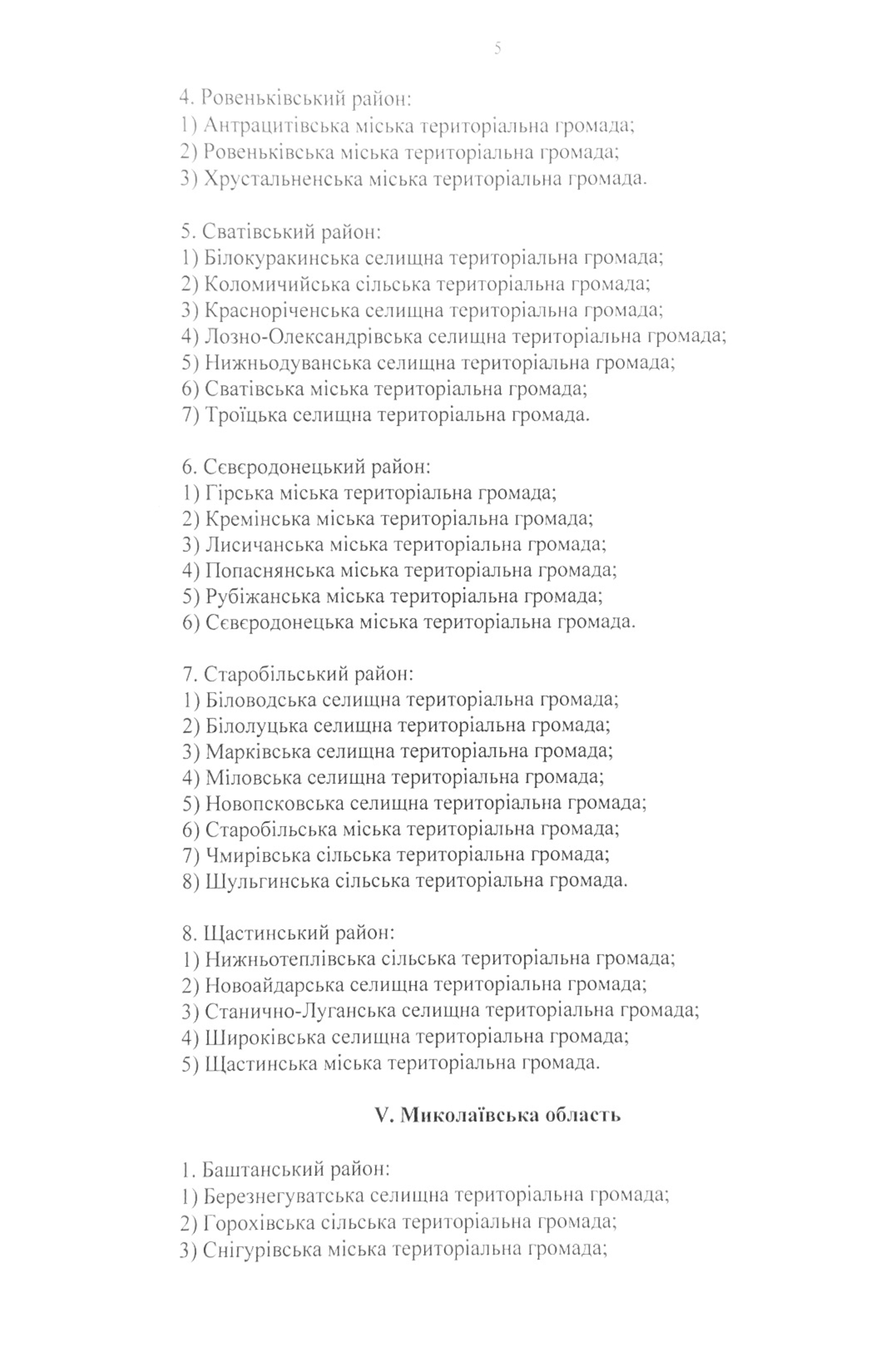 Всего в список вошли 8 областей. Это территориальные общины Днепропетровской (2 общины), Херсонской (49 общин), Харьковской (51 община), Николаевской (15 общины), Донецкой (66 общин – все), Луганской (37 общин – все), Одесской (1 община) и Запорожской (49 общин) областей.