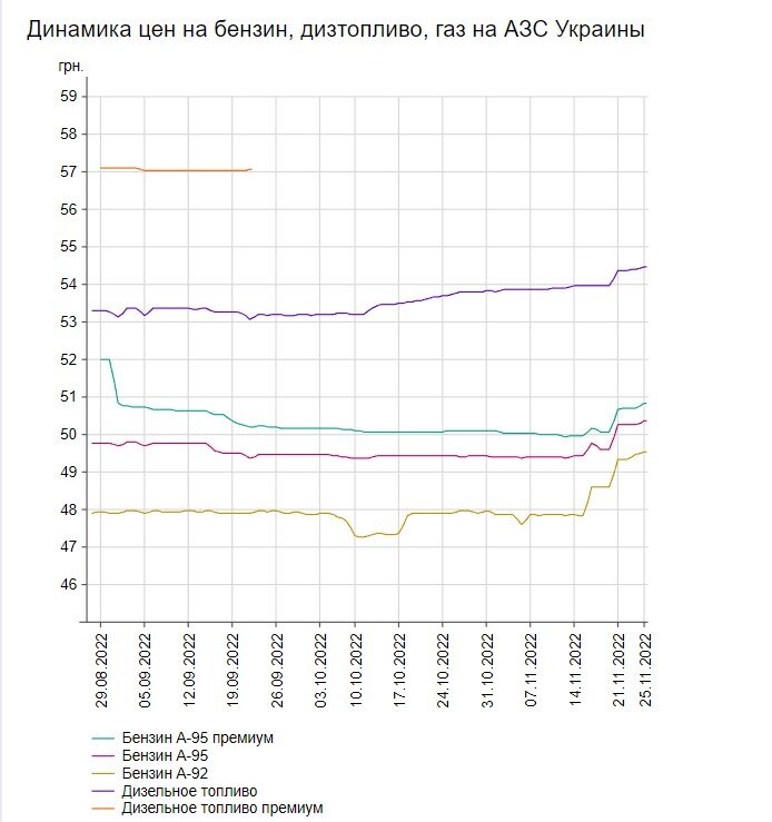Так, по состоянию на 25 ноября бензин А-95 премиум подорожал 14 копеек, составив 50,84 грн/л.