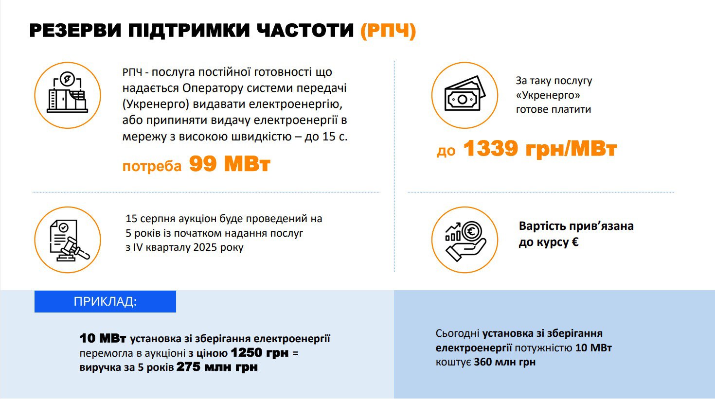Победители аукционов получат фиксированные контракты в евро с возможностью отсрочки выполнения условий до сентября 2025 года. Это дает возможность победителям построить необходимые электростанции или установки для обеспечения балансировки энергосистемы. Тарифы, предложенные "Укрэнерго", будут значительно выше, чем у европейских операторов энергетических систем, что предоставляет инвесторам дополнительные стимулы.