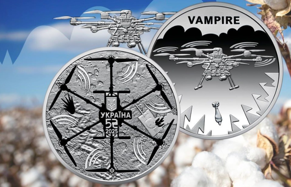 Национальный банк Украины презентовал новую памятную монету под названием "Украинский хлопок. БПЛА Vampire" из серии "Вооруженные Силы Украины", посвященную многоцелевому дрону украинского производства.