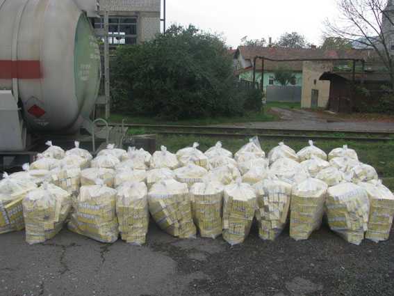 Крупная партия сигарет была обнаружена работниками транспортной милиции ЛО на ст. Чоп совместно с работниками Чопской таможни во время отработки в. Чоп на тупиковом пути в грузовой цистерне.