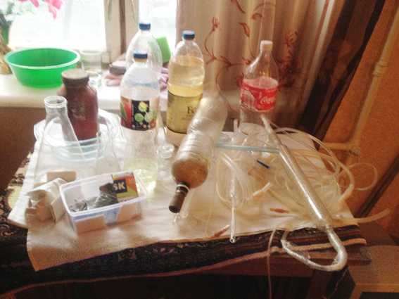 В ходе проведения санкционированного обыска милиционеры обнаружили в доме злоумышленника колбы, холодильник и прочее лабораторное оборудование для изготовления психотропного вещества. Кроме того, изъяли более десяти литров соляной кислоты и различные таблетки.