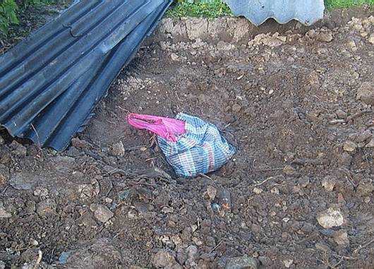 Работники милиции выкопали из земли пакет с мертвым мальчиком.
