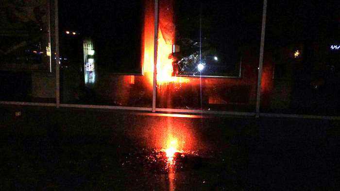 Сегодня, 27 июля, ночью во Львове горел офис «Сбербанка России» от попадания внутрь «коктейля Молотова». Другой офис забросали брусчаткой и патриотическими открытками.