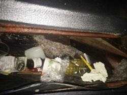 Пригласив свидетелей и проверив «ВАЗ», в бардачке автомобиля правоохранители обнаружили и изъяли два предмета внешне похожие на взрывные устройства гранаты «Ф-1» с запалами.