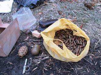 Правоохранители изъяли из схрона гранаты РГД-5 и Ф-1 с запалами и почти полтысячи патронов различных калибров.