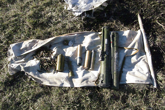 Из тайника изъято два гранатомета, две сигнальные ракеты, две гранаты и запалы к ним и около 200 патронов калибра 5,45 мм.