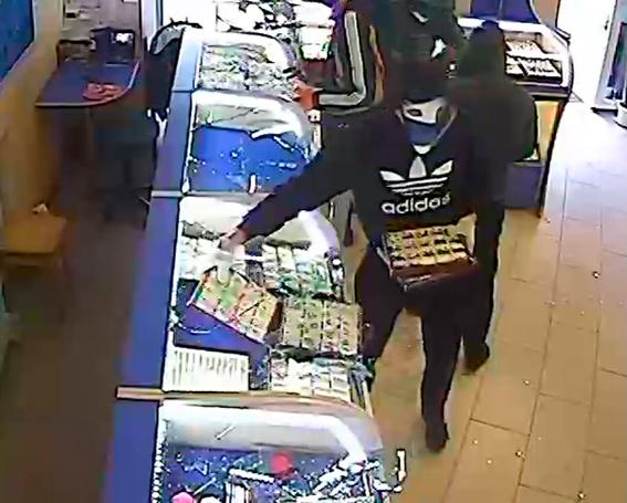 Розбивши чотири скляні вітрини та забравши звідти товар, нападники вискочили з крамниці, встрибнули в автомобіль, що їх чекав, і втекли.