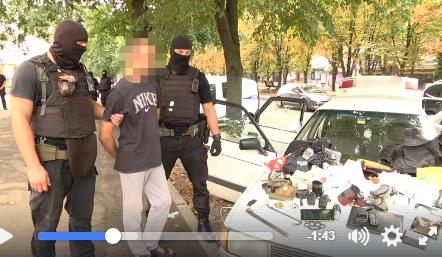 У задержанных злоумышленников обнаружена граната Ф-1 с запалом, пистолет, два магазина к автомату, кастет, балаклавы, рации, отмычки, около 1 килограмма конопли и несколько пакетов с амфетамином.