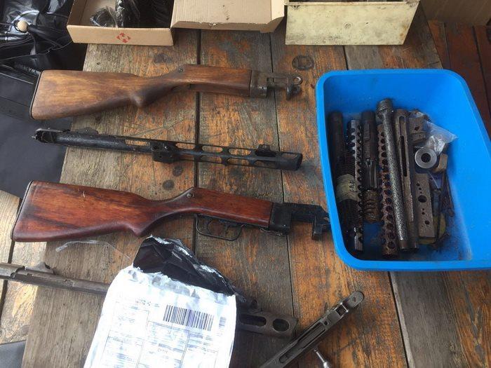 Во время обысков по месту жительства злоумышленника и в нелегальной оружейной, оборудованной в гараже, оперативники СБ Украины изъяли два пистолета-пулемета «Шпагина», винтовку «Мосина» и почти сто двадцать деталей для восстановления оружия.