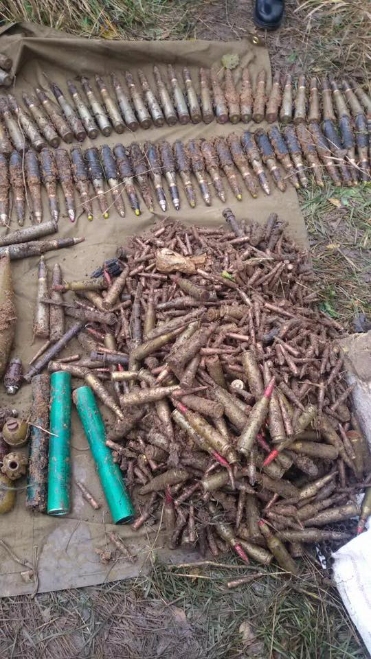 В результате 8-часовой работы полицейские изъяли из-под земли целый диверсионный арсенал: 200 снарядов к зенитным установкам и гранатометам, 6 мин, 9 гранат и около 40 000 патронов различного калибра.