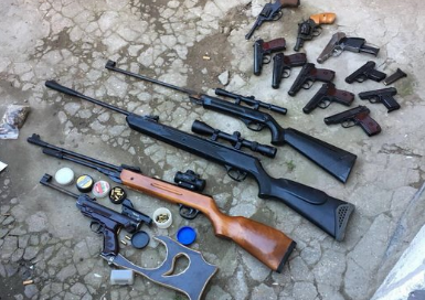 В ходе обысков по месту жительства дельца сотрудники СБ Украины изъяли одиннадцать пистолетов и револьверов, три винтовки, глушители и большое количество патронов различного калибра.