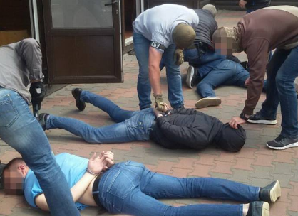 Оперативники спецслужбы зафиксировали передачу участникам группировки аванса и «взяли» четырех злоумышленников во время получения восемнадцати тысяч американских долларов рядом с рестораном на трассе Киев-Борисполь. Впоследствии был задержан и заказчик вымогательства денег.