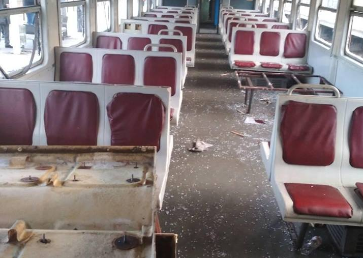 За 20 минут, пока электропоезд был в пути от Фастова до Мотовиловки, злоумышленники побили все окна и оторвали сиденья в четвертом вагоне. Инцидент произошел в 22:30.