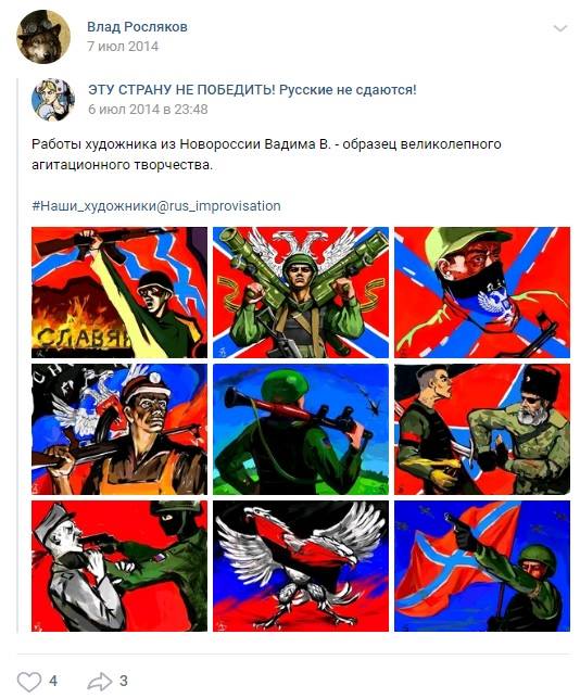 Судя по записям на странице Рослякова, еще в 2014 году он поддержал так называемый "русский мир" и оккупацию Россией украинских территорий. Юноша выкладывал портреты Путина, рисунки на тему "новороссии" и т.п.