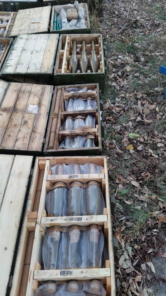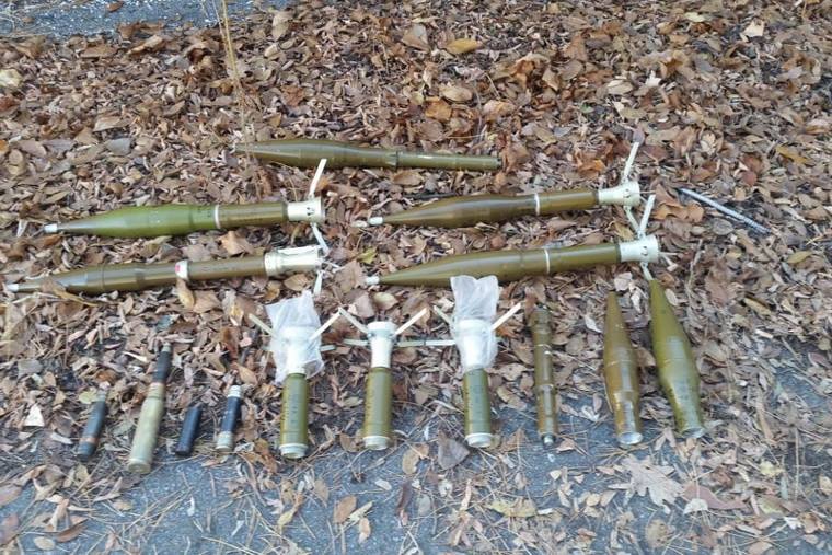 Специалисты-взрывотехники изъяли: четыре гранатомета РПГ-22, четыре гранатомета РПГ-26, 130 гранатометных выстрелов ПГ-7, 140 пороховых зарядов к выстрелам ПГ-7, 246 корпусов гранат (Ф-1, РГД-5, РГН, РГО), 339 взрывателей, 70 дымовых гранат РДГ-2Б, 80 патронов калибра 14,5 мм с подрывателями МДЗ, 31 запала, пять дымовых мин ДМ-11, 701 выстрелов ВОГ, две сигнальные мины, тротиловая шашка, пять выстрелов к РПГ, четыре реактивных двигателя, две боевые части ПГ 22, два снаряда 30 мм и около 54 000 патронов различного калибра.