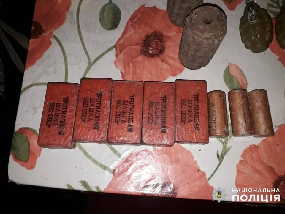 В ходе обыска полицейские обнаружили и изъяли: 18 гранат (РГД-5, Ф-1, РГН), тротиловые шашки общим весом около 1500 грамм, два осколочных корпуса к противопехотным минам ПОМ-2, две сигнальные мины, шесть сигнальных патронов. Кроме того, изъяты электродетонатор ЭДП, минный взрыватель МД-2, две зажигательные трубки ЗТП-50, переработанная зажигательная трубка ЗТП-50, пять взрывных механизмов в взрывателей МУВ, три накольных механизма к зажигательным трубкам ЗТП и около 1100 патронов различного калибра. Изъятое направлено на исследование в НИЭКЦ.