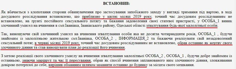 22-летнего Николая Тарасова из поселка Ивановка в Одесской области арестовали на 2 месяца без права на залог. Такое решение принял Киевский райсуд Одессы 21 июня. Мужчина признался в убийстве односельчанки 11-летней Дарьи Лукьяненко. К преступлению готовился, считает следствие.